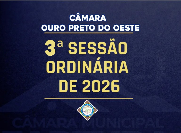 A Sessão Ordinária acontecerá dia 02/02/2026, a partir das 09:00h no Plenário da Câmara Municipal da Estância Turística Ouro Preto do Oeste