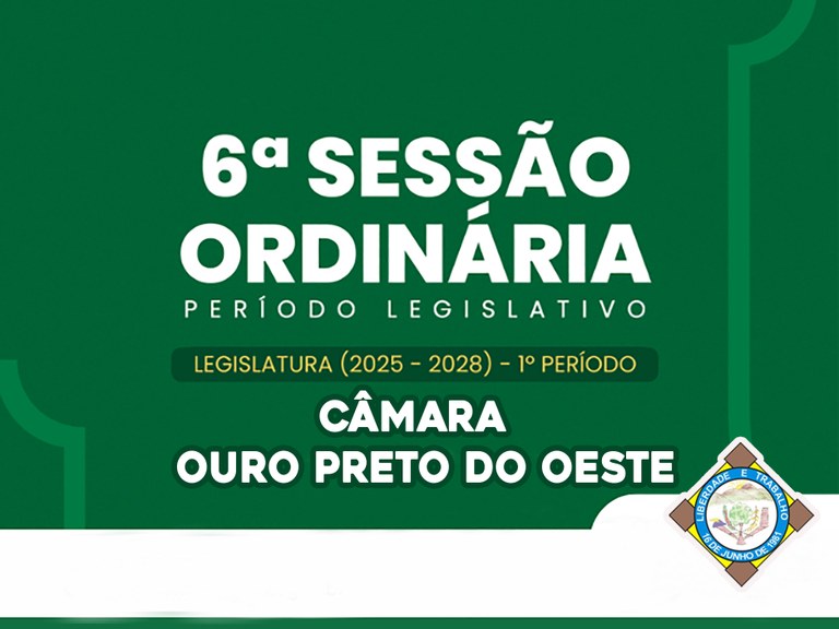 A Sessão Ordinária acontecerá dia 23/02/2026, a partir das 09:00h no Plenário da Câmara Municipal da Estância Turística Ouro Preto do Oeste